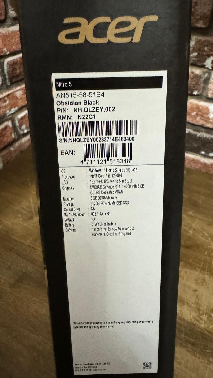 ACER NİTRO İ5/12 RTX 4050 8 RAM 512 SSD KUTU FATURALI BATARYA SAĞLAM KOZMETİK 10/10 ŞARJ ORİJİNAL RGB KLAVYE 22 AY GARANTİLİ
