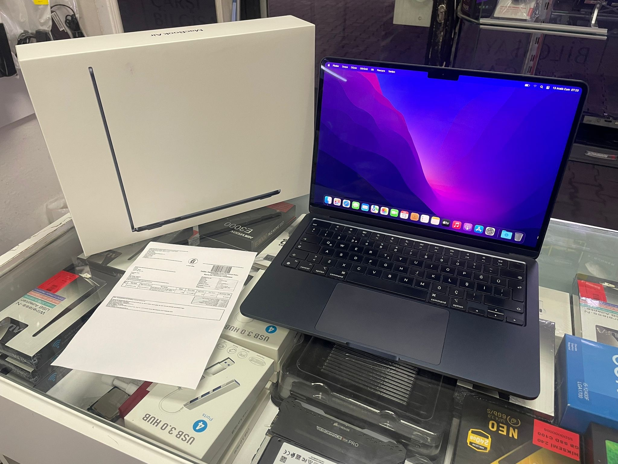MACBOOK AİR M2 İŞLEMCİ 8 GB RAM 256 GB SSD 13” 2K EKRAN PİL DEVRİ 186 22.11.2022 FATURALI KUTU FATURA MEVCUT